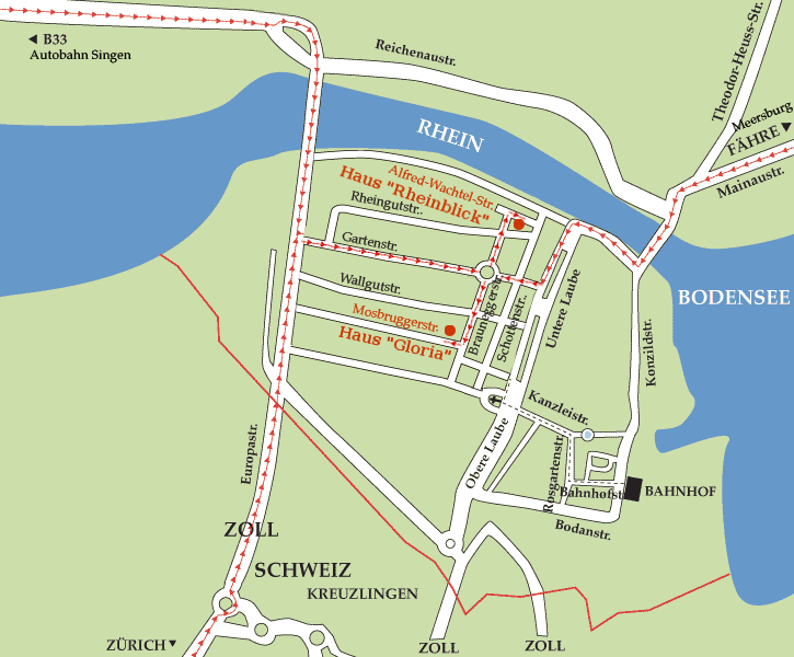 via the B33 from Singen / motorway, then turn into Gartenstraße at the bridge intersection