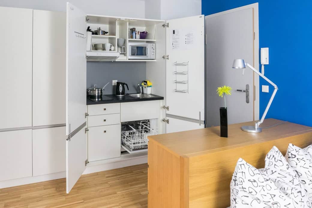 Blender, Coffee machine, Cooking utensils, Kitchenette, Refrigerator, Toaster